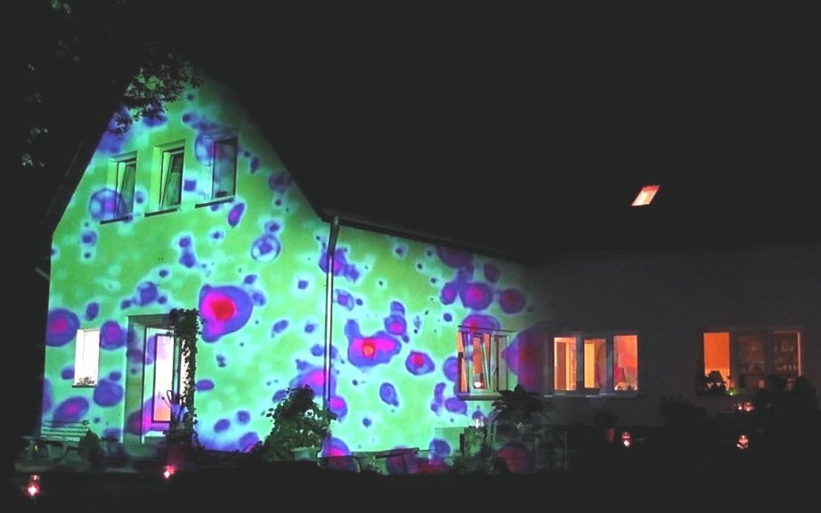 Wenn die Dämmerung hereinbricht, verändert sich das wildromantische Gelände von kik: Großformatige LichtBilder, NaturProjektionen und VideoMapping zum Thema Insekten erleuchten die Szenerie und werden von experimentellen Klangmodulationen untermalt.
