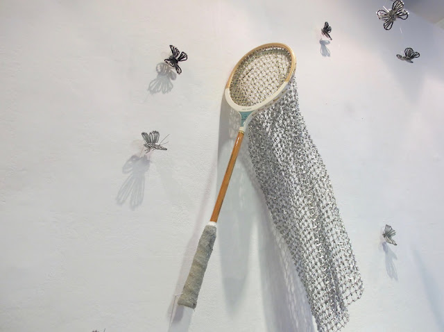 Aus Glasperlen, Sicherheitsnadeln und Draht werden gemeinsam mit dem Künstler Shige Fujishiro künstlerisch „Insekten“ geschaffen.
