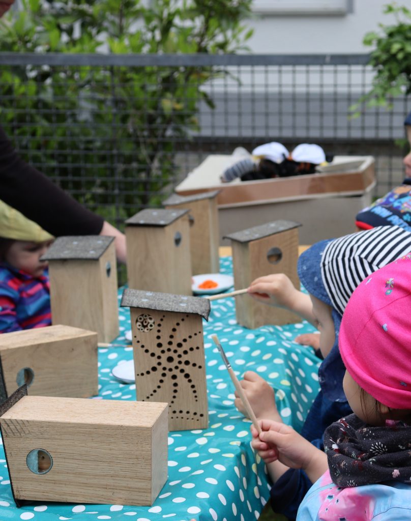 Gemeinsamer Bau von Nistkästen.